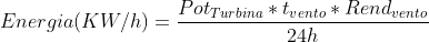 Matematicamente, para um caso péssimo de 30% de rendimento (Rend) e 8h diárias de vento (t), podemos fazer uma estimativa: