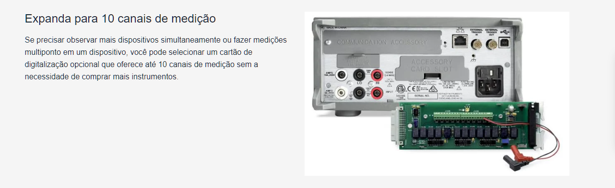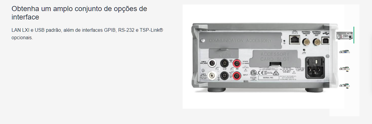 Projetado para uso em bancada, o DMM6500 apresenta construção robusta e confiável, adequada para ambientes laboratoriais e industriais. O equipamento possui múltiplas interfaces de comunicação, permitindo integração com sistemas automatizados e plataformas de teste. Sua estrutura foi desenvolvida para operação contínua, garantindo estabilidade e repetibilidade nas medições.