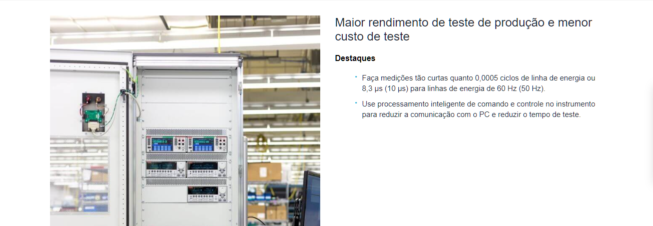 A operação é facilitada por uma interface moderna com tela touchscreen colorida de 5 polegadas, que permite visualização gráfica em tempo real, incluindo gráficos de tendência, histogramas e formas de onda. O equipamento oferece recursos avançados de armazenamento de dados, suporte a scripts TSP (Test Script Processor) e integração com softwares de automação, otimizando fluxos de trabalho e aumentando significativamente a produtividade em ambientes de teste.