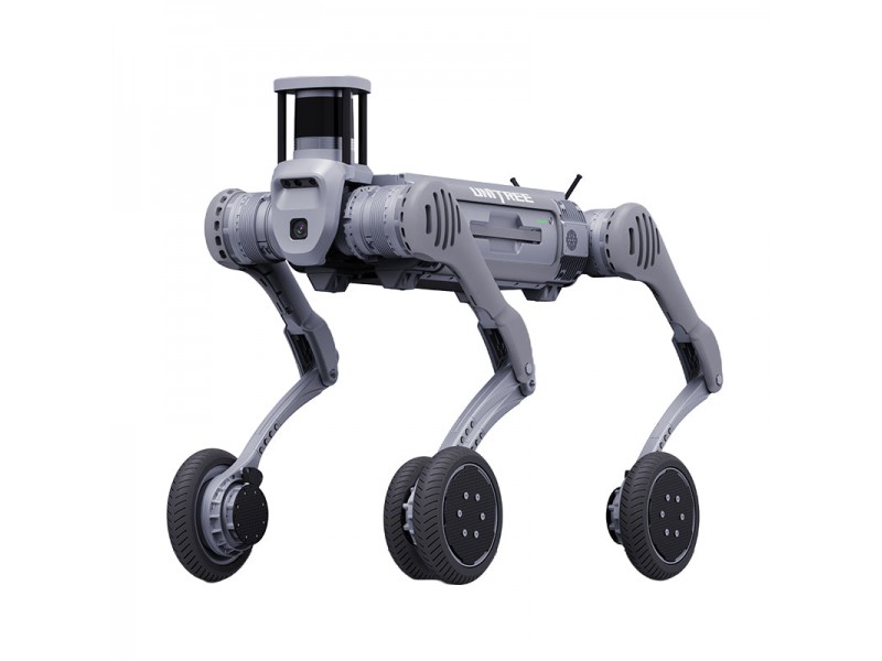 Trata-se de um robô híbrido com locomoção quadrúpede e rodas integradas, permitindo alta mobilidade em diferentes tipos de terreno, incluindo superfícies planas e irregulares.