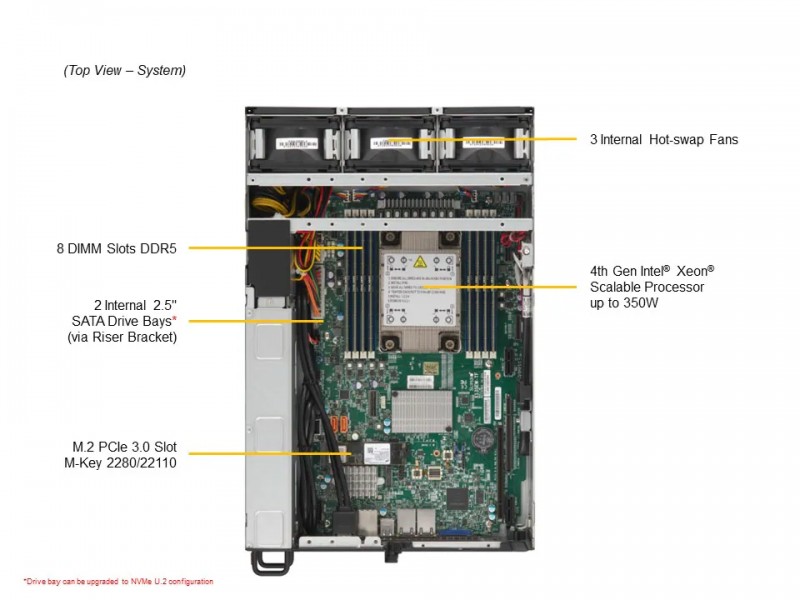 - *CPUs com TDP acima de 300W são suportadas sob condições específicas. Entre em contato com um representante da Supermicro para mais detalhes.