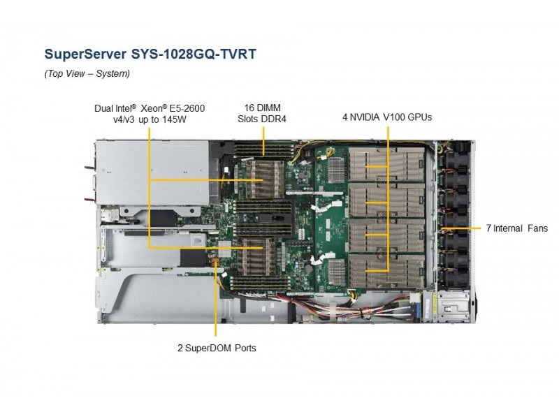 - Até 4 GPUs NVIDIA® Tesla® V100 SXM2 para aceleração de trabalho de IA e aprendizado de máquina.