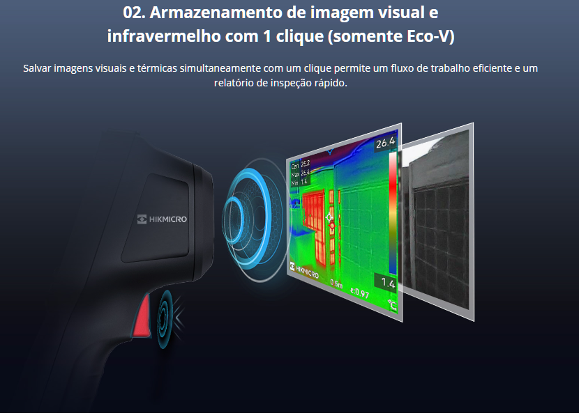 O Termovisor Hikmicro ECO é uma câmera termográfica portátil desenvolvida pela Hikmicro, projetada para medições térmicas rápidas e eficientes em aplicações industriais, elétricas e de manutenção predial.