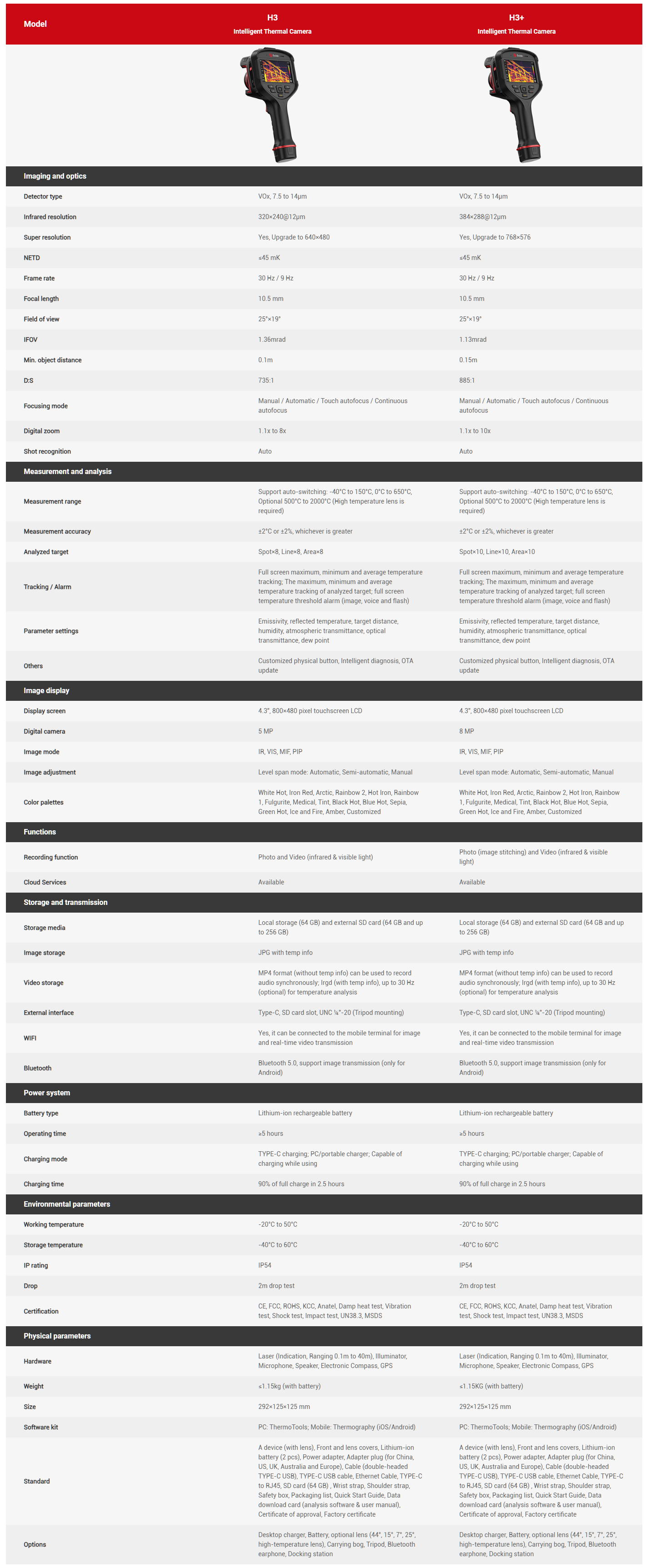 Equipado com sensor infravermelho não refrigerado e resolução térmica de 384 × 288 pixels, o Guide H3 oferece excelente qualidade de imagem e sensibilidade térmica, possibilitando a detecção de pequenas variações de temperatura. O equipamento incorpora tecnologias de aprimoramento de imagem, múltiplas paletas de cores e modos de visualização, garantindo maior clareza na análise e interpretação dos dados térmicos.