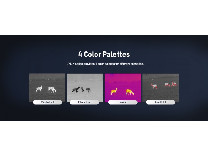 Paletas: Quente em Preto, Quente em Branco, Quente em Vermelho, Fusão