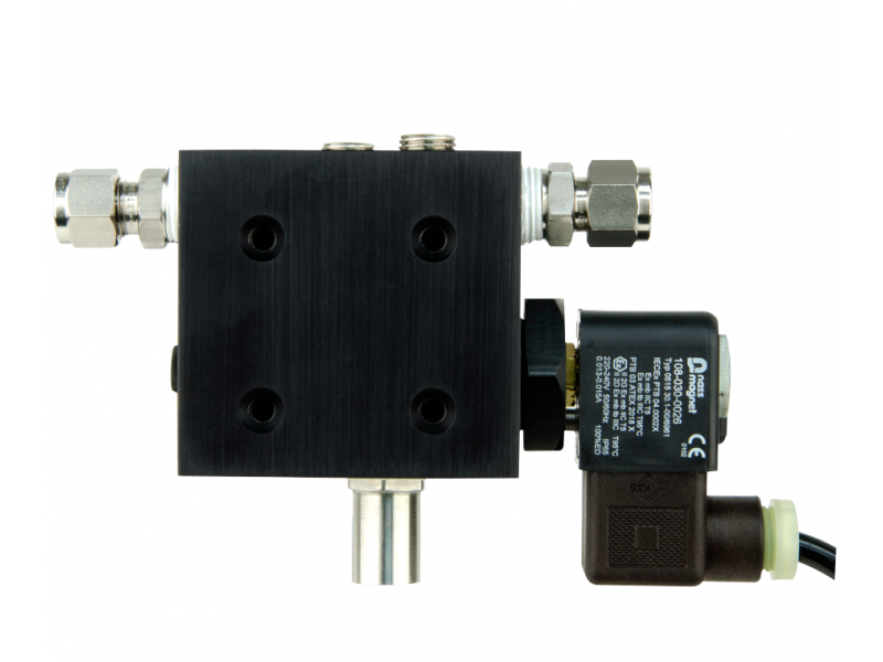 O 5500-MAN-EX01-* combina uma válvula solenoide para purga e uma válvula de agulha para pressurização em um único design de manifold. Quando a válvula é energizada, a válvula solenoide se abre e permite um alto fluxo de gás protetor para dentro do invólucro. Quando a válvula é desenergizada, o fluxo através da válvula de agulha interna pode ser ajustado por meio de uma chave de fenda plana no veio da agulha no manifold. A válvula solenoide é utilizada para purga, compensação de vazamentos e controle de temperatura por meio de sinais de pontos definidos pelo usuário na unidade de controle 5500.